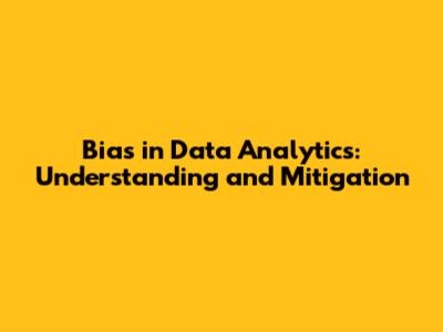 Bias In Data Analytics: Understanding And Mitigation