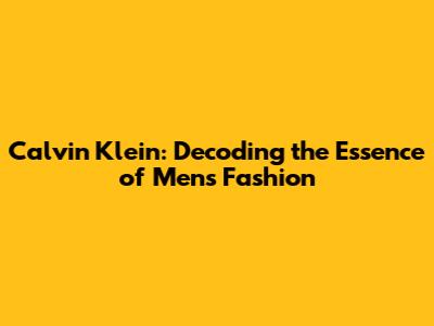 Calvin Klein: Decoding The Essence Of Men's Fashion