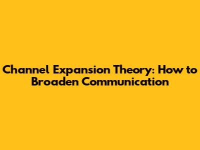 Channel Expansion Theory: How To Broaden Communication
