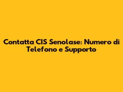 Contatta CIS Senolase: Numero Di Telefono E Supporto