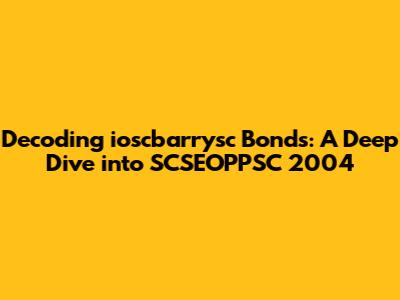 Decoding Ioscbarrysc Bonds: A Deep Dive Into SCSEOPPSC 2004