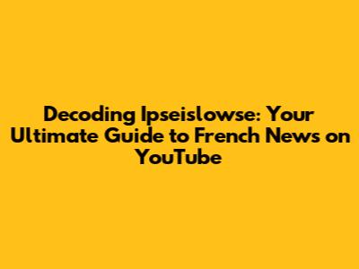 Decoding Ipseislowse: Your Guide To French News On YouTube