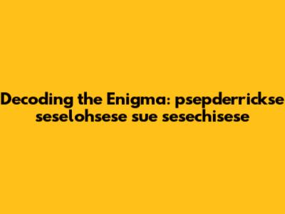 Have you ever stumbled upon a seemingly random string of characters and wondered what secrets it might hold? Today, we're diving deep into the mysterious realm of "psepderrickse seselohsese sue sesechisese." This isn't just any jumble of letters; it's a fascinating puzzle begging to be solved. Whether you're a seasoned linguist, a curious coder, or simply someone who enjoys a good brain-teaser, get ready to embark on an exciting journey of decoding and discovery.