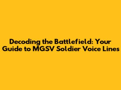 Decoding The Battlefield: Your Guide To MGSV Soldier Voice Lines