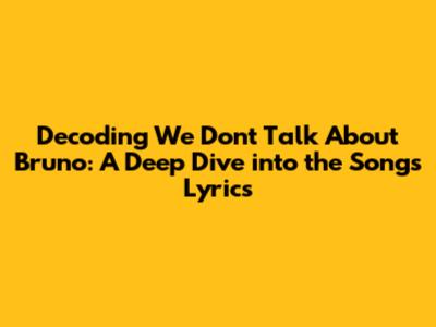 Decoding 'We Don't Talk About Bruno': A Deep Dive Into The Song's Lyrics