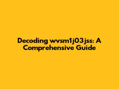 Decoding Wvsm1j03jss: A Comprehensive Guide