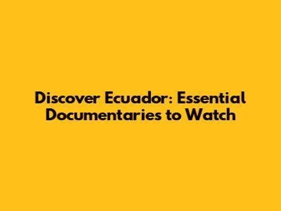 Top Documentaries Exploring Ecuador's Rich Tapestry