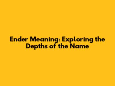 Ender Meaning: Exploring The Depths Of The Name