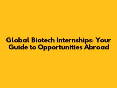 Global Biotech Internships: Your Guide To Opportunities Abroad