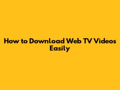 How To Download Web TV Videos Easily