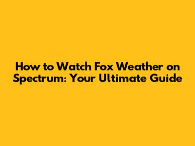 How To Watch Fox Weather On Spectrum: Your Ultimate Guide