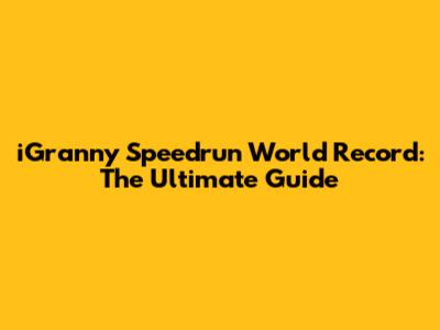 IGranny Speedrun World Record: The Ultimate Guide
