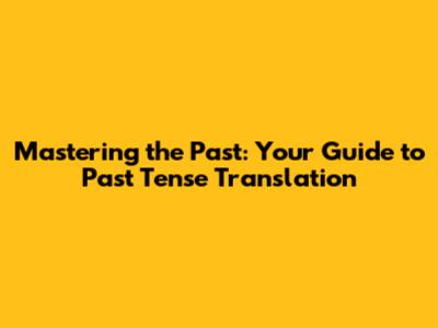Mastering The Past: Your Guide To Past Tense Translation