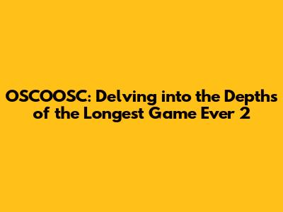 Unveiling the Enigma: What is OSCOOSC and Longest Game Ever 2?
