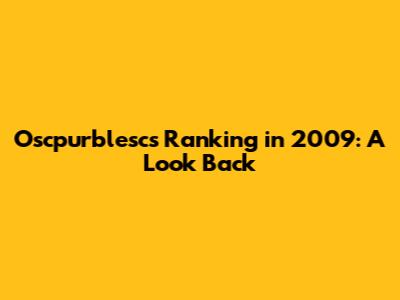 Oscpurblesc's Ranking In 2009: A Look Back