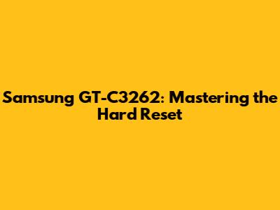 Hey tech enthusiasts! Today, we're diving deep into the Samsung GT-C3262, a classic phone that still holds a special place in many hearts. If you're here, chances are you're facing a bit of a hiccup with your device. Maybe it's sluggish, frozen, or you've simply forgotten your password. Whatever the reason, you're in the right place! We're going to break down how to perform a hard reset on your Samsung GT-C3262, a process that can often breathe new life into your phone. This guide is designed to be super easy to follow, even if you're not a tech wizard. Let's get started!