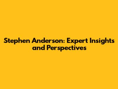 Stephen Anderson: Expert Insights And Perspectives