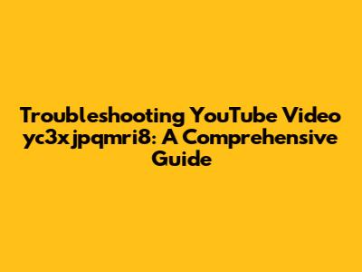 Troubleshooting YouTube Video Yc3xjpqmri8: A Comprehensive Guide