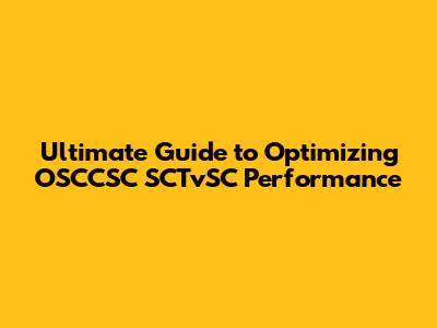 Ultimate Guide To Optimizing OSCCSC SCTvSC Performance