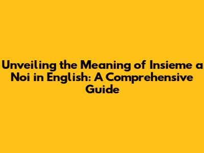 Unlocking The Meaning Of 'Insieme A Noi' In English