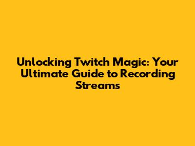 Unlocking Twitch Magic: Your Ultimate Guide To Recording Streams