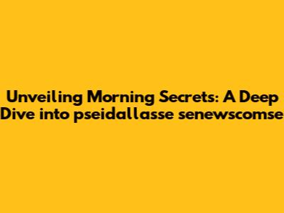 Unveiling Morning Secrets: A Deep Dive Into Pseidallasse Senewscomse