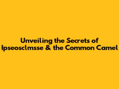 Unveiling The Secrets Of Ipseosclmsse & The Common Camel