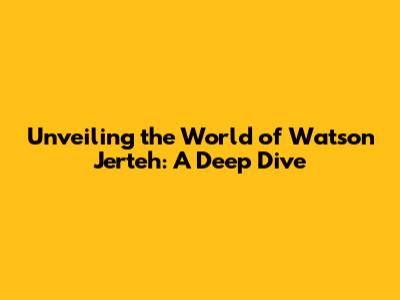 Unveiling The World Of Watson Jerteh: A Deep Dive