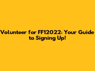 Volunteer For FF12022: Sign Up Now!