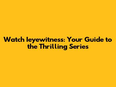 Watch Ieyewitness: Your Guide To The Thrilling Series